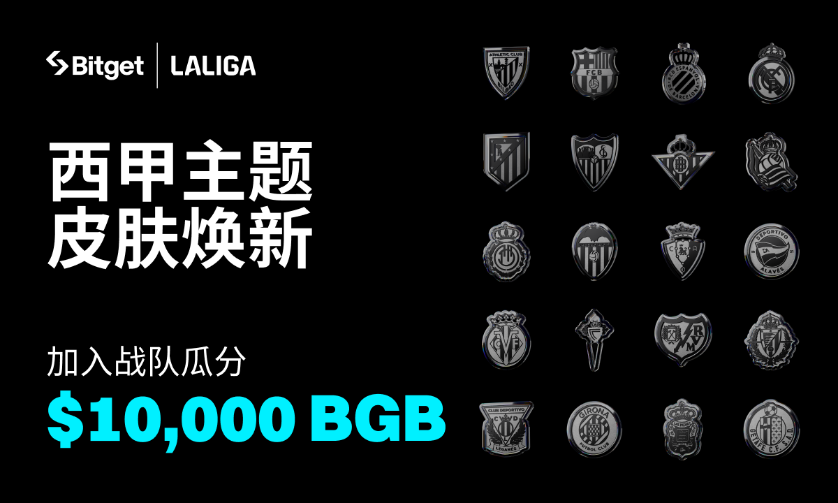 Bitget 携手西甲,颠覆既有游戏规则。 今天,我们将带来变革性的交易体验—— 为战队荣耀而战。立即焕新 App 界面,换上官方西甲皮肤,集结战队,瓜分 $10,000 BGB 代币奖励,还有机会获取足球传奇好礼!