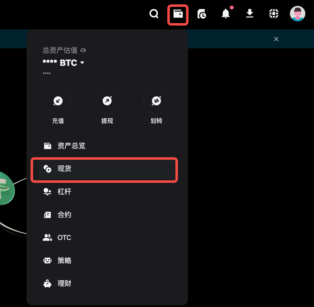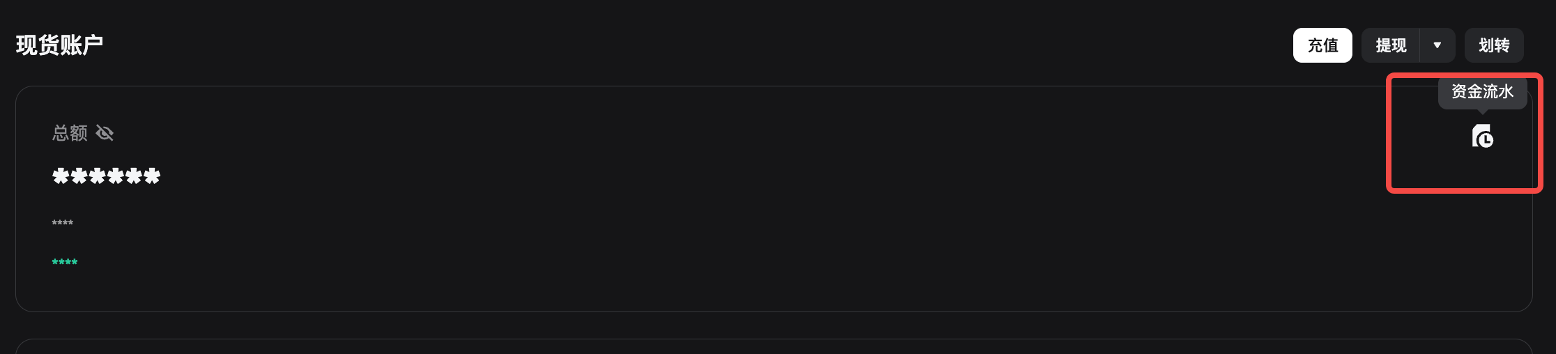 2. 订单现货订单:历史委托、成交明细、资金流水、充提记录
